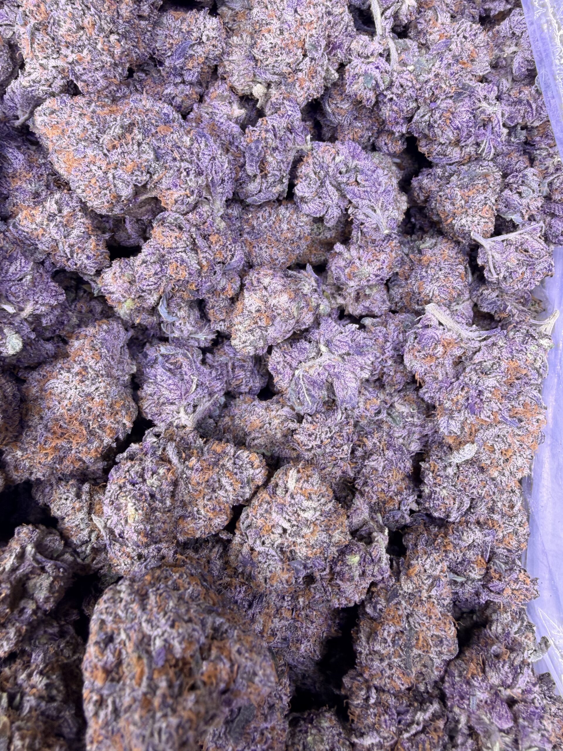INDICA DOMINANT HYBRID – Grape Ape is a mostly indica crossbreed of Mendocino Purps, Skunk, and original Afghani. It shares their potency, with THC levels as high as 18-21%, which makes it a relatively strong – but not overpowering – tool for treating disease. As its name suggests, Grape Ape tastes and smells like sweet grapes, with a subtle berry flavor. Like its Purple ancestors, this strain develops a deep purple bud and leaves to go with its grape-like qualities. It’s most useful in treating chronic pain, including migraines and arthritis, though it also helps relieve anxiety, depression, and PTSD. The high is profoundly relaxing, a full-body experience that can lead to strong couch-lock and deep sleep. This is definitely a nighttime strain, as it can have a near-comatose effect. But the high can also be euphoric and focused, with a clear mind. Dry mouth is common, as are red eyes. Most easily found on the West Coast, in Colorado, and in Michigan, this popular strain can also be purchased across the country, on both legal and black markets. It’s a relatively easy strain to grow.